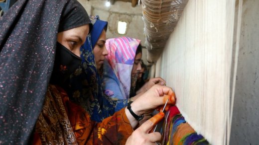 Image: © Omar/Salaam Times. Afghan women weave a carpet in Injil District, Herat Province, Afghanistan on September 28, 2022.