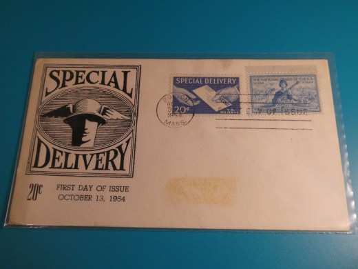 Image: Winged Mercury special delivery stamp issued in 1954.